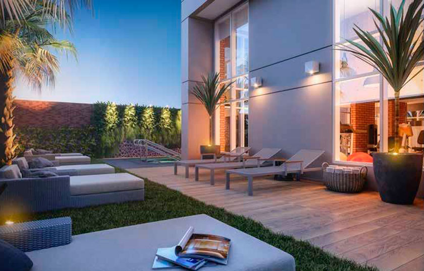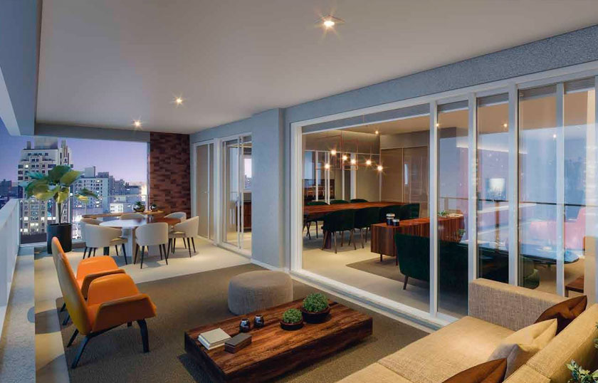 AMPLO TERRAÇO INTEGRADO AO LIVING, COM ÁREA EXLUSIVA PARA CHURRASQUEIRA